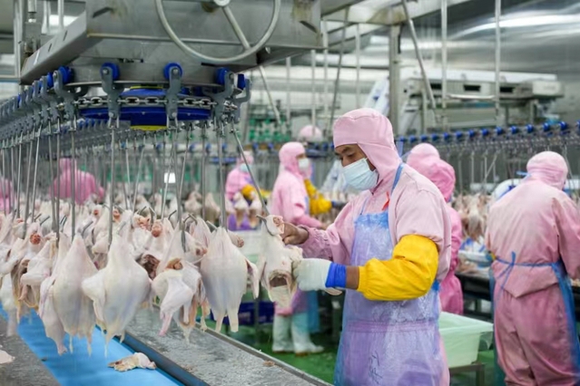 在固镇经济开发区的蚌埠大成食品有限公司,一只鸡从宰杀到包装只需要2小时,每年有2000多万羽白羽肉鸡在这里孵化出壳,在经历几十天的养殖周期后,它们被精深加工成260种不同类型的生鲜品、226种不同类型的熟食品,售往世界各地。