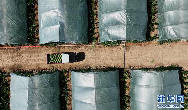 航拍太和县郭庙镇西瓜种植基地。新华网发(孙磊 摄)