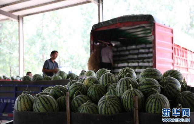 瓜农正在采摘西瓜。新华网发(徐浩 摄)