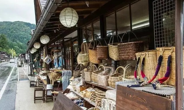 商业街的规划建设包括饮食店、小卖部、旅游纪念品店、土特产店等,都是与本地结合的具有乡土特色的商店。每个店都有自身的主要卖点,合理分布方便游客。“白川乡合掌村落自然环境保护协会”的建筑规则在商业街中体现出了整体美的风格。店面装饰充分利用了当地的自然资源,体现了一种温馨的朴实美,其工艺性、手工趣味性吸引了大量游客的眼光。旅游商店的设计布局、门面装饰都是提升景观功能的关键要素, 旅游商品的开发, 也是旅游观光业的一个重要项目之一。白川村善于结合现代人追求的时尚, 以植物花草为装饰元素, 装饰家园、把村庄装扮得花团锦簇, 观赏的人们总是在美丽的田野间、村庄旁、商店前拍照留影, 令游客流连忘返。合掌村落的生态之美给来自世界各地的游客留下了难以忘怀的美好印象。