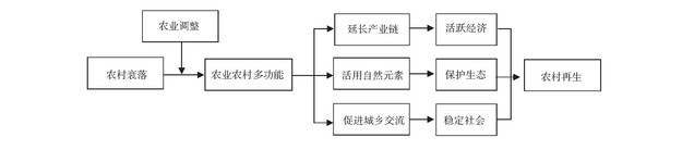 1989年,农林水产省实施了关于农村的民意调查,结果显示:国民对农村的印象主要有“绿意盎然、环境优美”“人情味浓”“生活安逸”等;对于农村发展的方向,国民希望农村能够“实现农产品产地直送,保证食物新鲜”“保护自然资源和田园风光”“塑造充满人情味的生活环境和传承农耕文明的文化环境”“打造城市居民接触自然的交流场所”等[5]。该民意调查印证了社会大众重新认识并接纳了农业农村多元价值这一观点。部分经营者抓住新机遇,开始将经营活动从种植业、养殖业拓展至加工业、服务业,并将自然和文化元素融入其中。例如,三重县阿山町的某农场,主营业务是从当地的养殖户处收购优质肉猪(“伊贺猪”)加工成火腿和香肠进行销售,在遭遇经营赤字时转变发展理念,1988年开设以猪肉为主题的农家餐馆,1990年打造田园观光型农业公园,吸引了大量热爱乡土料理、渴望贴近自然的城市游客到访,实现了农业农村多功能性的增值增效[13]。开发农业农村多种功能,既能盘活用好当地优势资源,又能培育新产业、新业态,符合“农业调整”的思路,成为农村再生的良好契机(参见图2)。