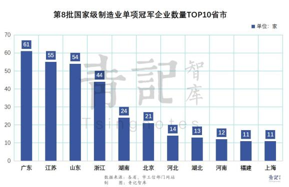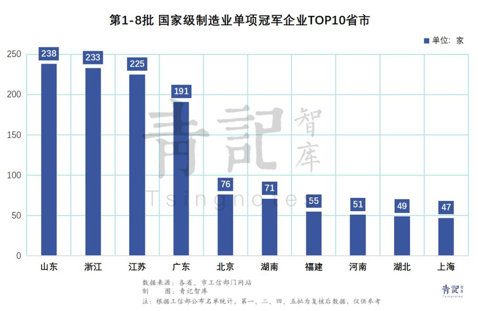 随着第八批国家制造业单项冠军名单出炉,山东再度超越浙江,登顶单项冠军“第一省”。