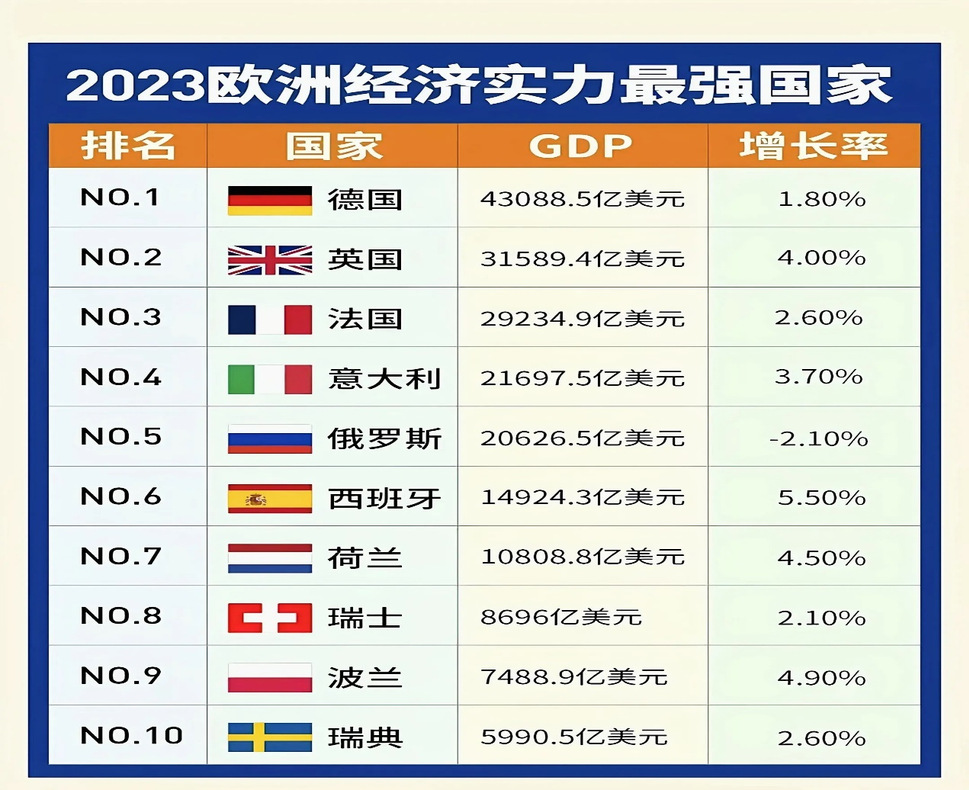 江苏2023年GDP12.82万亿人民币,1.78万亿美元,中国第二,在欧洲只能位居第六,超过第六的西班牙0.29万亿美元,低于第五的俄罗斯0.28万亿美元。