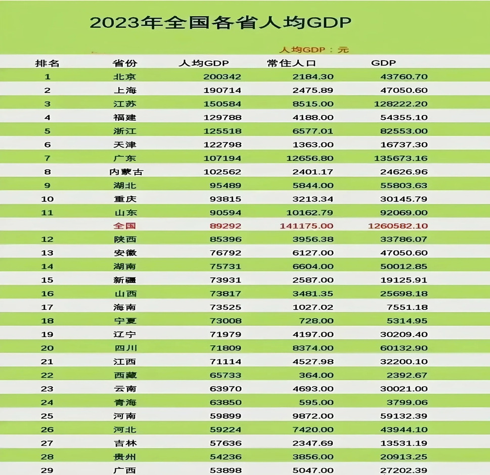 2023年江苏人均GDP为15.06万人民币,折合2.09万美元,中国第一的江苏在欧洲也只能排在第29位。超过第29的希腊0.07万美元,低于第28的拉脱维亚0.02万美元。