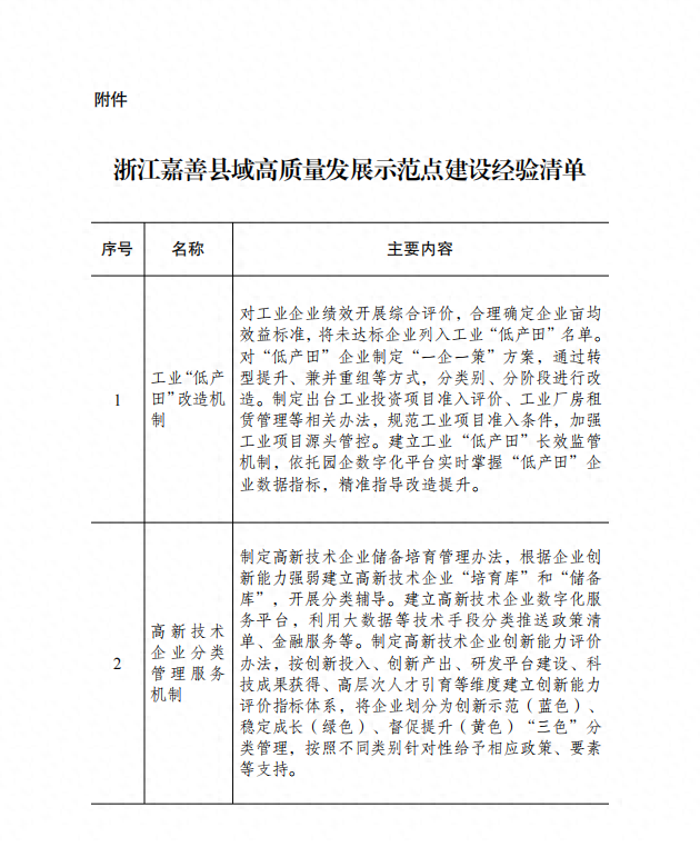国家发展改革委会同浙江省有关方面系统梳理总结嘉善推进县域高质量发展的好经验好做法,形成浙江嘉善县域高质量发展示范点建设经验清单,供各地根据实际情况参考借鉴。