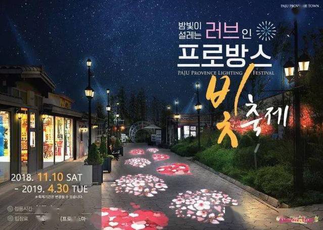 同时,每年冬天还会举办盛大的普罗旺斯星光节,用大型LED灯光秀给冬季的小镇打造缤纷撩人的夜色吸引力。通过大片的LED花海,卡通雕塑装置等等,演绎《爱丽丝梦游仙境》、《绿野仙踪》等美丽的童话故事。灯光秀还设置了韩国国内最大的灯光隧道,一经推出就成为了首尔年轻恋人表白约会的胜地。
