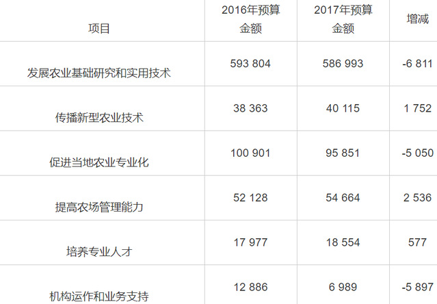 表6 2016—2017年政府农业科技创新预算分配情况②