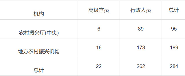 表1 农村振兴厅系统中行政管理人员数量