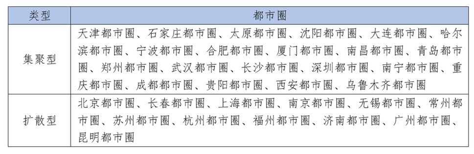 通过中心城市与外围地区的人口规模比较可以发现,中国都市圈多处于集聚发展的阶段。都市圈发展通常表现出集聚、扩散、再集聚的规律,中国都市圈发展尚处于起步阶段,通常处于前两个阶段,特别是第一个集聚的阶段。分别计算2010年和2020年中心城市占都市圈总人口的占比(表3),发现有21个都市圈的中心城市人口占比升高,可以被划归为集聚型,有12个都市圈呈现中心占比下降的扩散特征,包括较为成熟的长三角各个都市圈、受政策影响的北京都市圈、以及一些外围地区本身增长较快的都市圈,如济南、福州等。