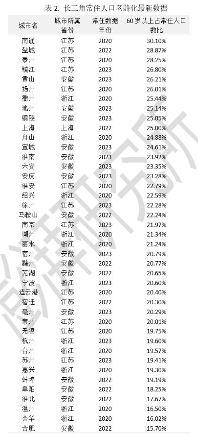 长三角老龄化两极分化:南通比合肥“老”了近2倍