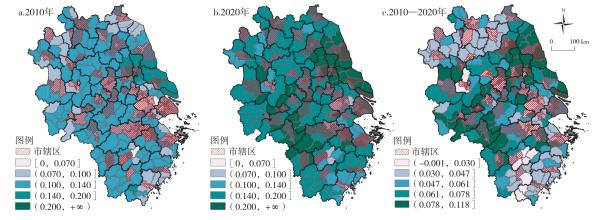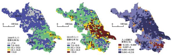 图5.江苏省人口老龄化空间变化(2010-2020)图片来源:许昕,赵媛,张新林,等.江苏省人口老龄化空间分异演变及影响因素[J].地理科学,2017,37(12):1859-1866.