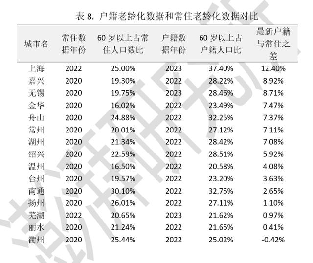 一个是本地统计局每年公布的统计公告和年鉴,一般常住和户籍只选一个作为口径。只有极少数的城市,比如杭州、宁波、合肥等,会同时公布两个口径的数据。而表8中的城市,是本地统计局每年公布的公报、年鉴,仅统计户籍口径人口年龄的城市。