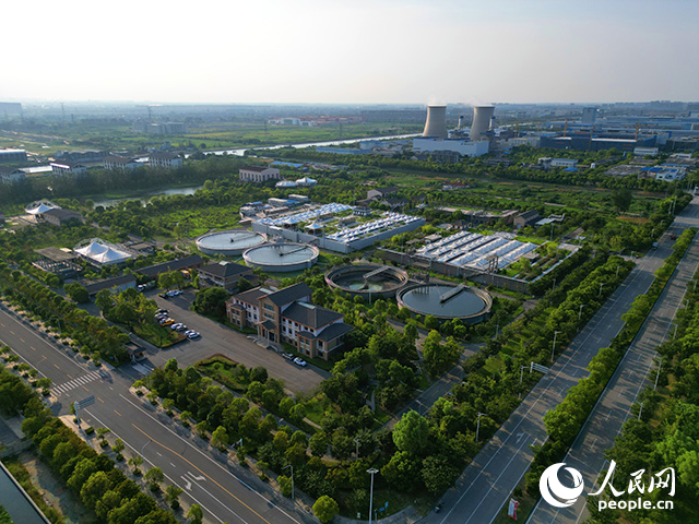 青山常在,绿水长流。在南通通州区益民水处理生态缓冲区,芦竹、美人蕉、黄菖蒲、灯芯草等各色植物繁茂,水面更有睡莲、荷花争妍,俨然一个湿地花园。