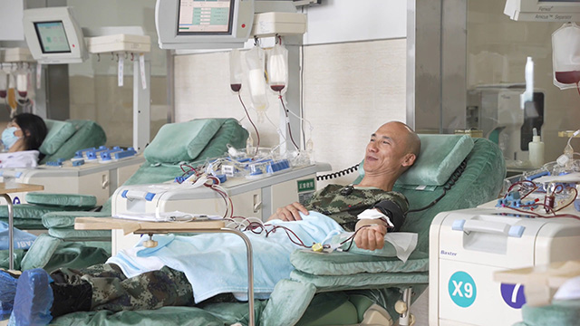 常州货车司机刘永振在志愿献血。受访者供图