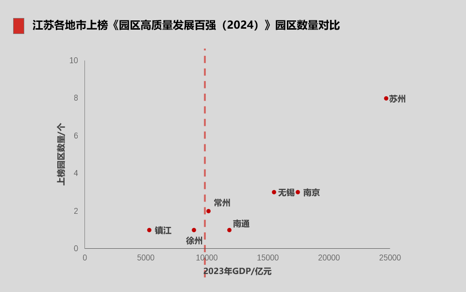 江苏各地市上榜《园区高质量发展百强(2024)》园区数量对比