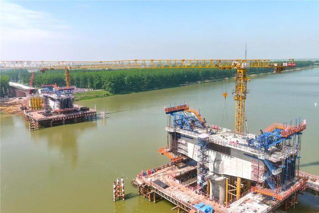 日前,工程建设者正在合新高铁五河段怀洪新河特大桥施工。据悉,合新铁路全长324公里,其中安徽段新建线路198公里,设计时速350公里,共设泗县东、五河、明光西、定远东、八斗(越行)、新合肥西等6个车站。本报通讯员 李向前 韩咪咪 摄