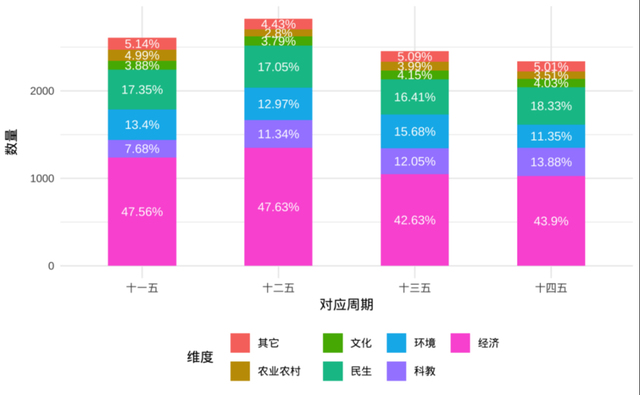 这体现出五年规划针对不同类型的主题分类规划的特点,也体现出从经济计划向市场指导转变的趋势。这一变化是对市场在资源配置中起决定性作用的进一步承认,并给予了地方和基层官员在执行规划时更多的空间,有利于调动央地“两个能动性”。
