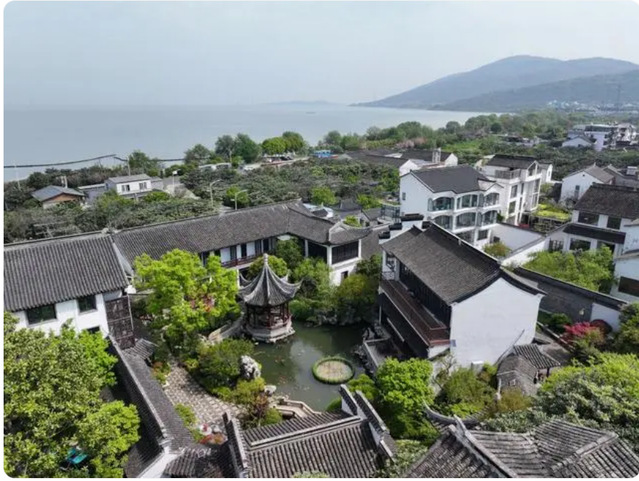 这是在江苏省苏州市吴中区东山镇太湖畔拍摄的民宿(2024年4月11日摄,无人机照片)。