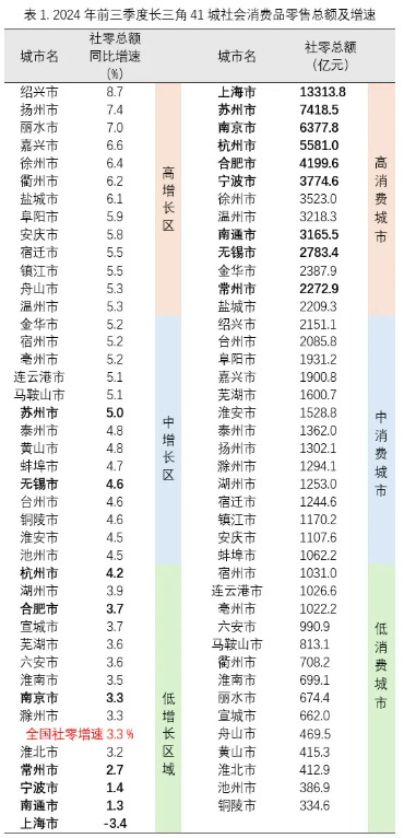 长三角41个城市前三季度社会消费品零售(以下简称“社零”)数据呈现出三个明显的趋势。