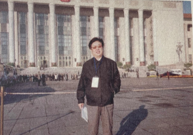 1996年,虞孝感参加八五国家科技攻关表彰大会,在人民大会堂前留影。