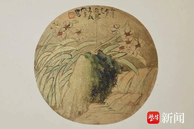 清·任薰水仙石头纨扇面 南京市博物总馆藏