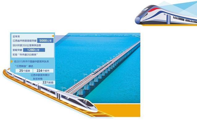 从畅通群众出行路,到服务区域协同发展大局,再到“与世界对话”,江西省交通强省的建设步伐不断加快。近年来,江西省内铁路里程突破5000公里,设计时速350公里高铁运营里程突破1280公里,实现“市市通350高铁”。沪昆通道、沿江通道、厦渝通道和京港(台)通道以“三横一纵”在赣鄱大地上刻下“丰”字,一张交通四通八达、产业新兴强劲、民生幸福笃实的蓝图正成为现实。